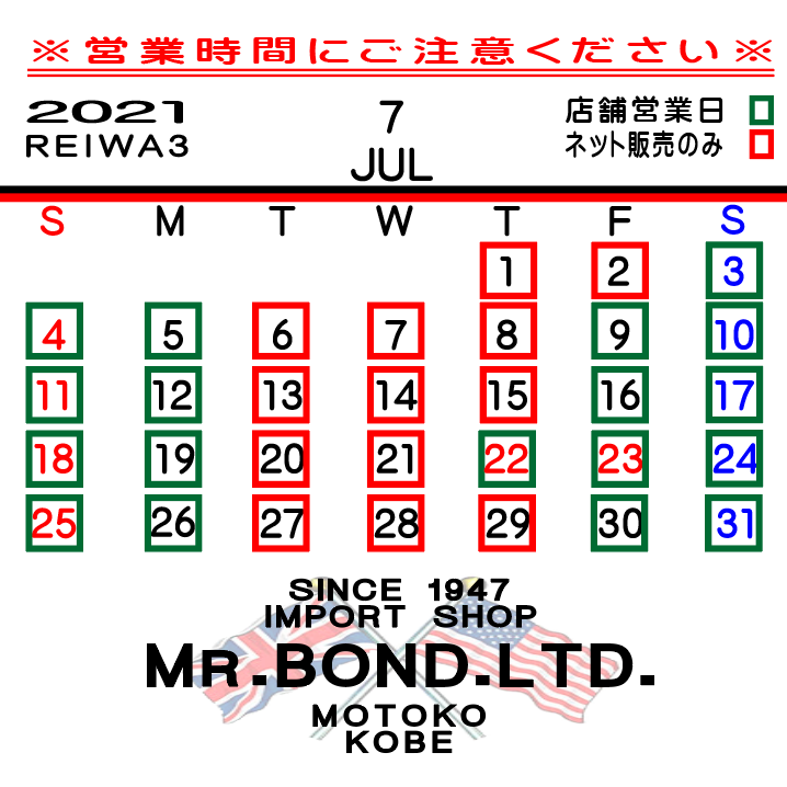 ■■■ 2021.6.1 より当面の間、下記日程で営業いたします ■■■