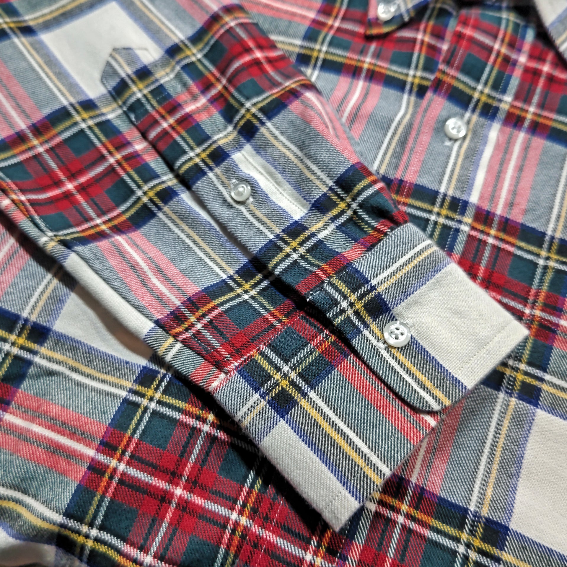 当店オリジナルのボタンダウンシャツ(長袖)です。素材は綿100%を主軸に、、、リネン・ウールなどの自然由来の素材で展開しております。生地はブロード・OX・フランネル・ツイル・ビエラ・シャンブレー・ダンガリー・シアサッカーなどなど、、定番生地の中からその年々でベストなものをチョイス。本商品は綿100%の " フランネル生地 / タータンチェック " です。フィットはルーズ過ぎずタイト過ぎない、俗に言うアメトラ型の程よい ボックス型シルエット。時代が変わっても、また何歳になってもスタンダードな組み合わせでお使い頂けます。ハイテックな現代だからこそ環境にやさしい、人肌にやさしいローテク素材で末永くご愛用いただけたらと思います。