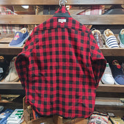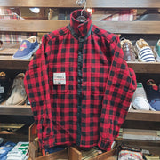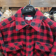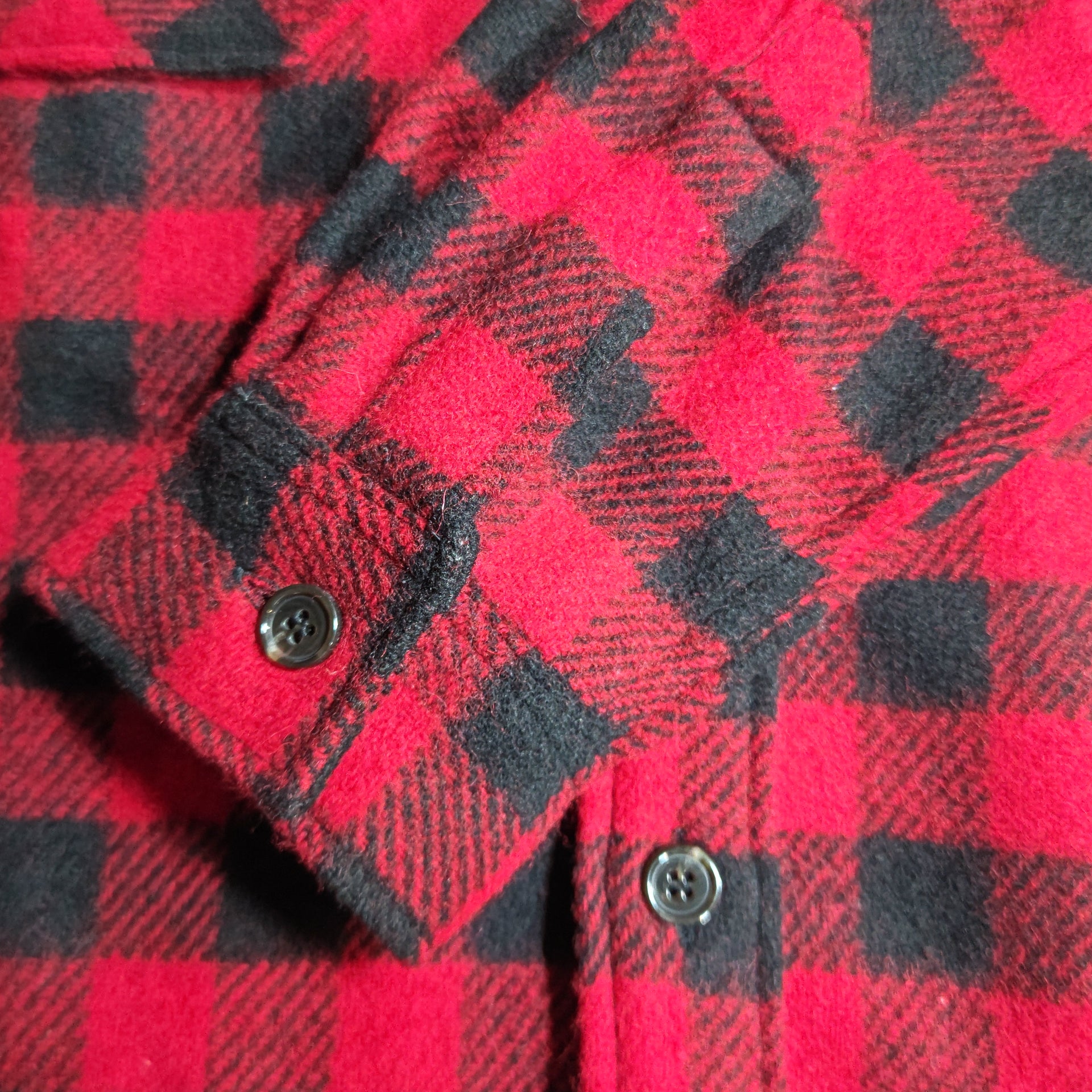 Lumberjack = 木こり。自然を相手に生業を営む、、そんな彼らが着用するために生まれた服こそが真のワークウェアなのではないだろうか。元来、バッファロープラッド(チェック)柄というものは視界が良好でない山林地帯でも人間の存在を認識しやすくするために開発された物。例に例えると猟銃などの誤射被害を防ぐためのものなのだ。近年ではそのキャッチーな見た目が故にファッションシーンにも転用されることの多い定番柄となっている。バッファロープラッドのワークシャツは一定数、出回りはあるのだが、、エルボーパッチ付きのランバージャックシャツともなると希少性は高い。何より本品に限ってはバッファロープラッドと言えば、、の代表格、アメリカ" Woolrich "社のイタリア体制になる以前のデッドストック物、ウールフランネル生地を使用していることが最大の特徴。ウールフランネルが故、軽い、暖かい。この品、まず間違いなし。