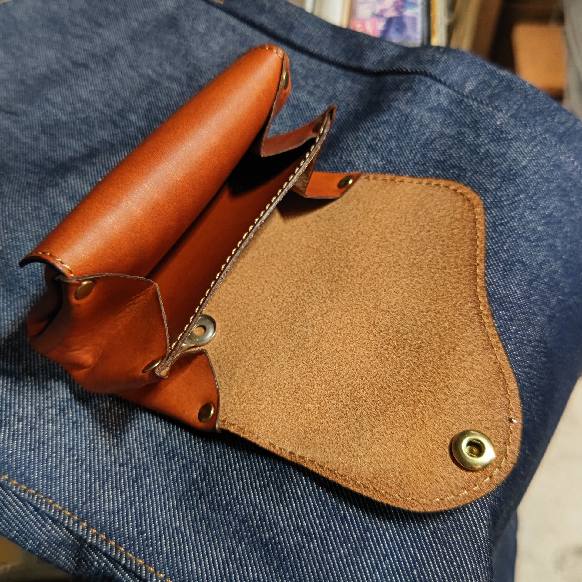 - 素材:表革(イタリアンフルグレインレザー(牛革))・裏革(スエード(豚革))・スナップ(真鍮)