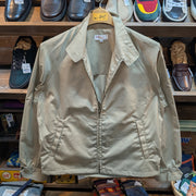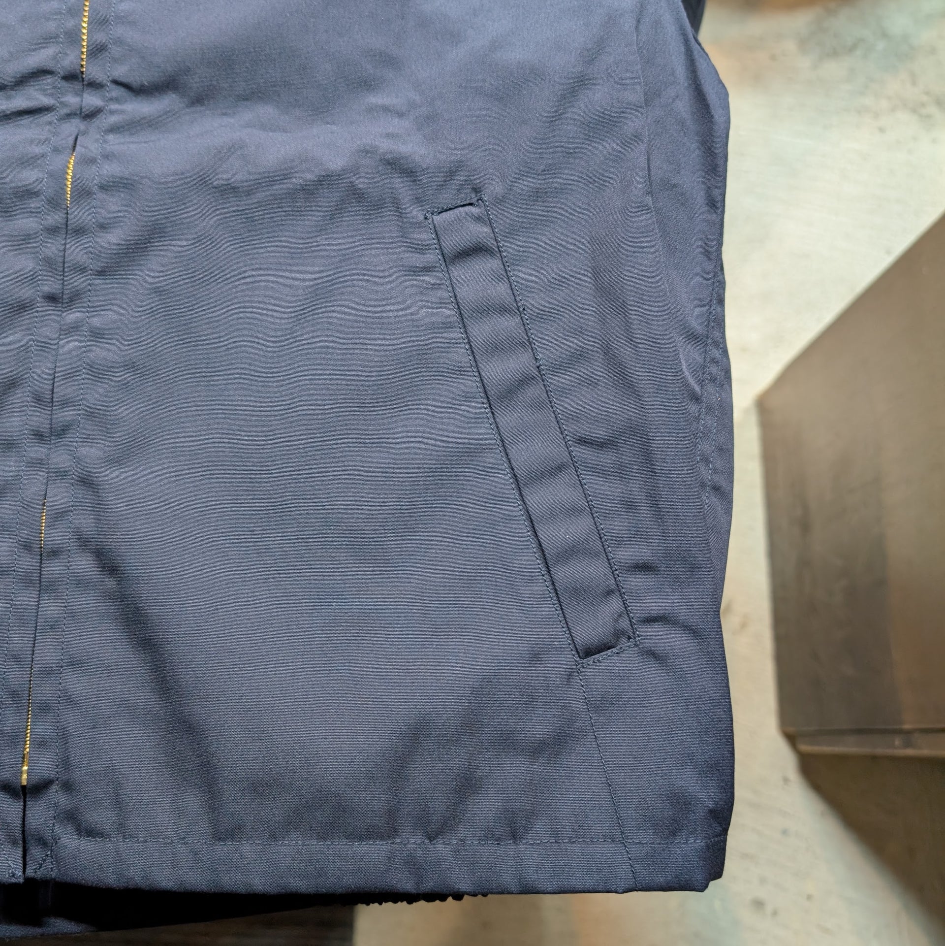 当店オリジナル番はこの製品より始まった、、 2000年初頭、大量生産・大量消費の時代に陰りが見え始めたアパレル業界。これからは価値観の多様化、カテゴライズ化、が必至になるだろうと誰しもが少なからず感じていたあの時代 - 。当店も" スタイル "を提供するためには独自の商品企画・開発が多少なりとも必要になってくるだろうと当時、二代目・岡保雄は考えていたのであった、、そんな中、弊社倉庫にアーカイブとして保管されていた1960~1970年代に初代・保典が仕入れてたいた米国「イングリッシュ・スクエア社」の harrington jacket を一から型紙に起こし、仕立て上げたものが本品番となるわけである。時代が変われど定番品は間違いなく" そこ "に存在し続ける、、米軍でも使用される程よく配合された綿ポリの " weather cloth " の混紡生地は適度なしなやかさを保持しつつ、丈夫で長持ちなのが特徴。たくさん着て経年変化も楽しんで頂けると幸いです。