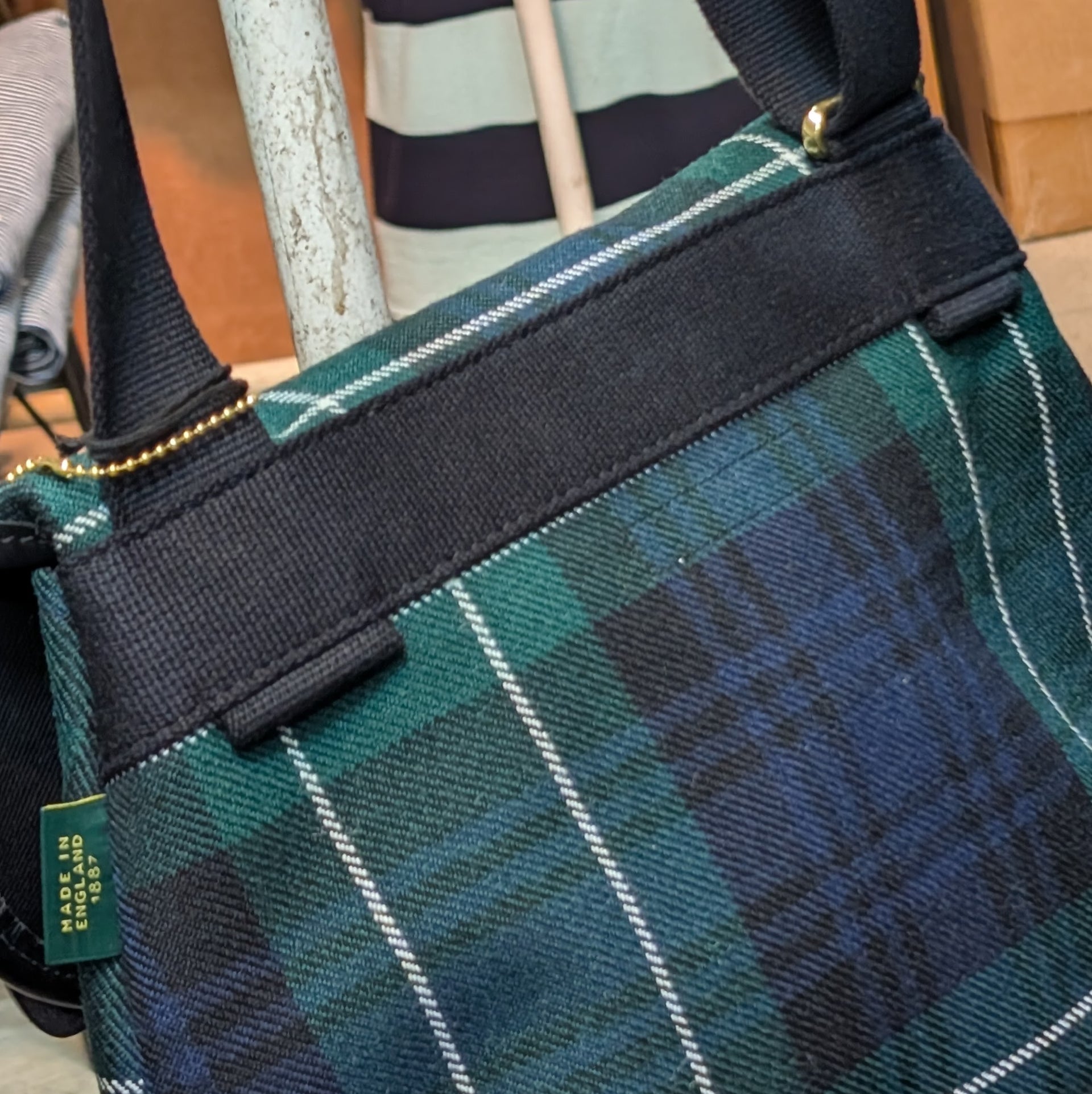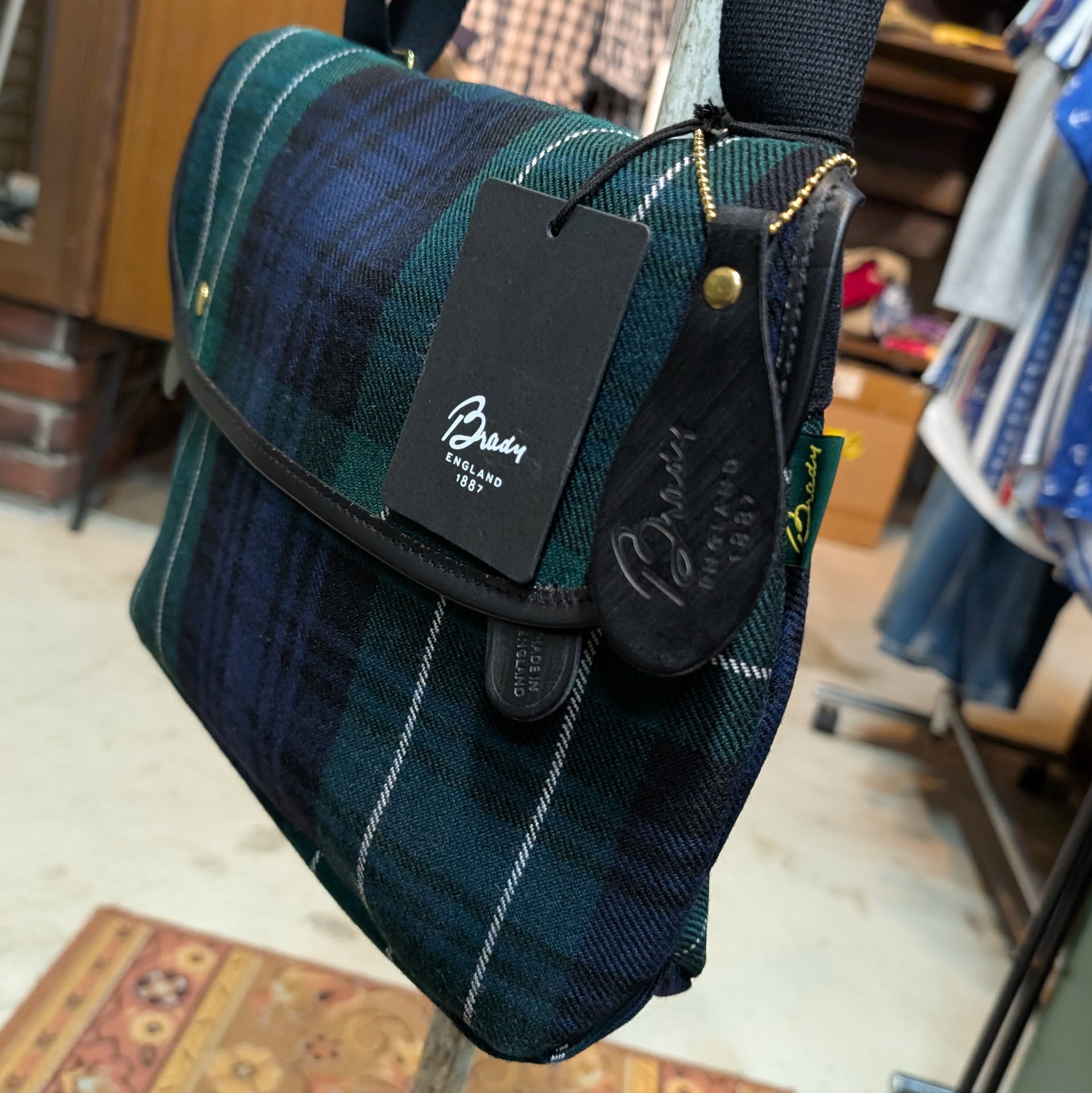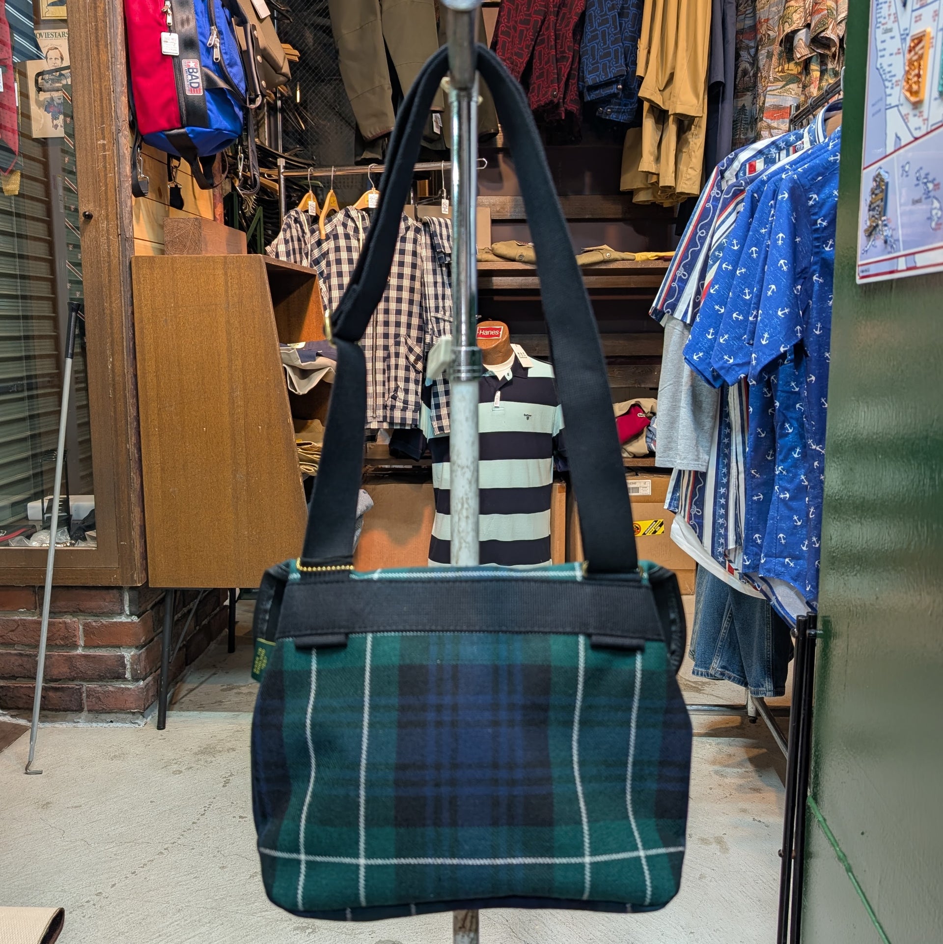 英国製、Brady 社のクラシックモデル " Avon " 。1950年にフィッシングバッグとして世に出され、現在もオリジナルパターンを基礎とし今も尚、数多くのオーナーにより愛用されている歴史的なモデルとなります。今回はその avon のボディに特別仕様、1892年創業のスコットランド製の生地 " LOCHCARRON " 社のスコティッシュ・タータン柄の tweed を使用した限定モデルとなります。また Brady 社の標準仕様、英国内製造の耐久性・撥水性の高いロウ引き加工がなされるブライドルレザー、そして馬鞍などにも使用される耐久力・安全性にも長けている高品質で風情のある真鍮製金具、ミリタリースペックでもある綿100%を使用した耐久性のある肩掛ストラップも Brady 社製品では代表的な物で必要不可欠な構成パーツであります。収納は英国のバッグメーカーらしくミニマルな設計でメイン収納のみ。B5ファイルや小物であれば十分に収納できる程よい大きさ。その取り回しのしやすさから近年では老若男女問わずに好まれているモデルでもあります。また通常、バッグ横に縫い付けられる肩掛けストラップが bag 背面に取り付けられている理由はフライフィッシングの際、 bag 本体が人の体に密着し遊ばない様にと工夫された仕様になります。元来のフィッシング bag だけの用途にとらわれず、時代を超えて様々な生活様式のニーズに応えるバッグとして永年生き続けている Avon シリーズ。限定ボディであるスコットランド製の質実剛健な tweed 生地とブライドルレザー、真鍮金具が織りなす素朴かつ伝統的な物こそ、英国らしいのスポーツ bag と言った処。時代に左右されない至高の逸品をぜひ貴方の手に -。