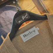 1929年スコットランドの東海岸" ピーターヘッド "にて ピーター・ハーレー・バカン によりニットメーカーとして創業。若かりし頃のピーターはかつて船乗りをしていた経歴があった -。航海の際、訪れた土地土地にて培われてきた伝統的で特有なセーターの模様、仕様の数々に魅了され後に事業を興すきっかけとなったのだった。当メーカーの特徴は何といってもシェットランド諸島でのみ生息するシェットランシープから刈り取たれた羊毛。さらにジーロンラムズウールやメリノウール、カシミヤ、リネンなどのニットも得意とする。技術面での特徴といえば シームレスニッティング=輪編み という技法が当メーカーの生命線とも云えよう。継ぎ目をより減らすことによってそれでこそ引っ掛かりが生じやすい羊毛衣料のストレスを軽減してくれる。” 軽くて暖かい ”羊毛本来の特徴も相まって着込みがちな冬の様相をより快適なものにしてくれる。 wool 大国、スコットランドの代表格 Harley of Scotland の衣料製品をぜひご堪能下さい。